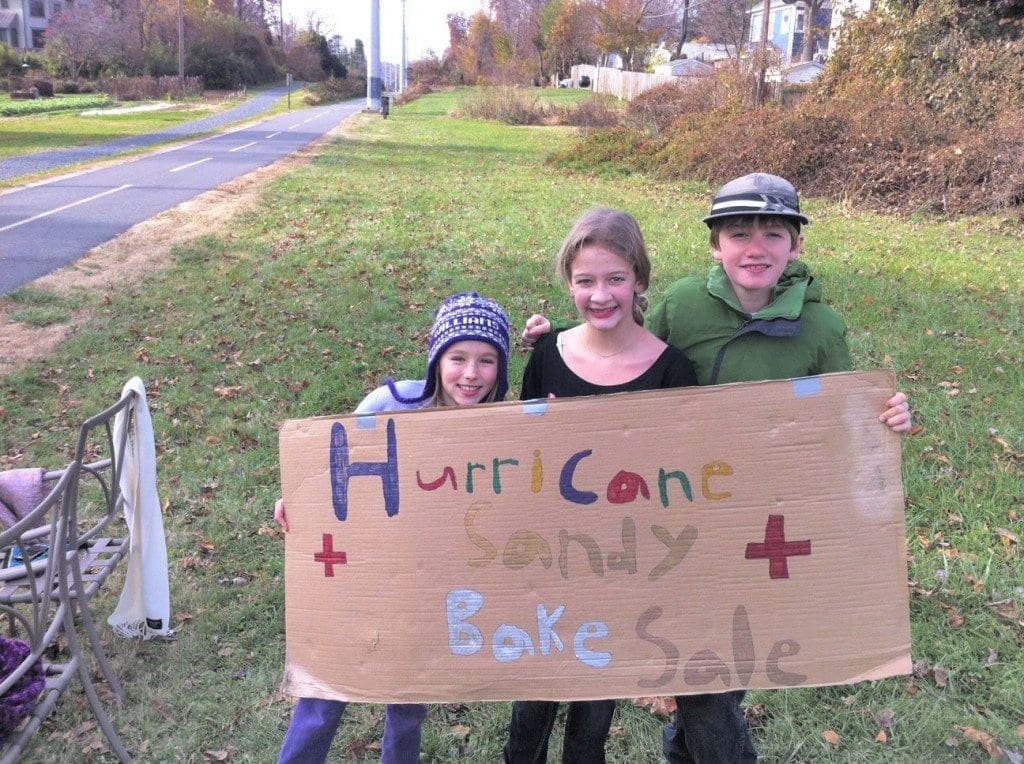 Three students from Mary Ellen Henderson Middle School set up a bake sale on the W&OD Trail last Sunday to raise funds for Hurricane Sandy relief. They collected $112.80 to give to the Red Cross. Pictured above are, from left to right, Ciara Curtin, Grace Rasnake, and Evan Lawrence. (Photo: Courtesy John Lawrence)