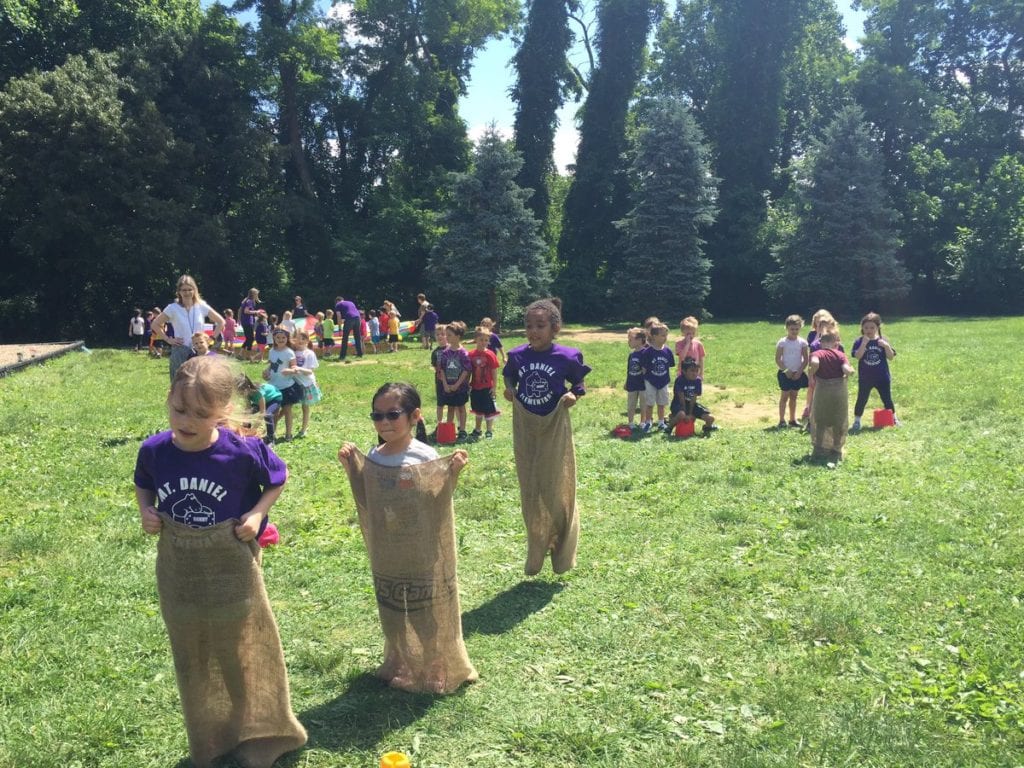 Racing their way to the finish line are Mount Daniel School students during the annual field day that took place on Tuesday, June 7. The activities, which also included a rainbow-colored parachute for students to play with, are a fun way to celebrate the end of another year. (Photo: Haley Kalb)
