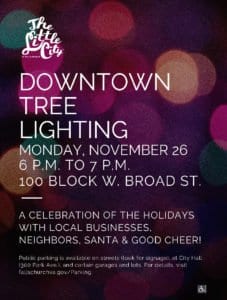 A new Falls Church tradition of launching the street tree lights in the downtown section of W. Broad Street will resume this Monday, Nov. 26, when Mayor David Tarter will hit the switch to power up the holiday lights in a ceremony in the middle of the 100 block of W. Broad at 6 p.m.