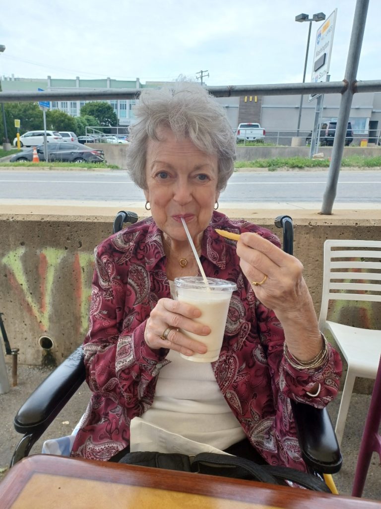 Our family celebrated her life the way she lived her own, no fanfare or unnecessary attention and surrounded by the ones she loved. In lieu of flowers or donations to causes that were important to our mom, she would rather you take a dance lesson, an art class, travel the world or simply share a milkshake with someone you cherish.