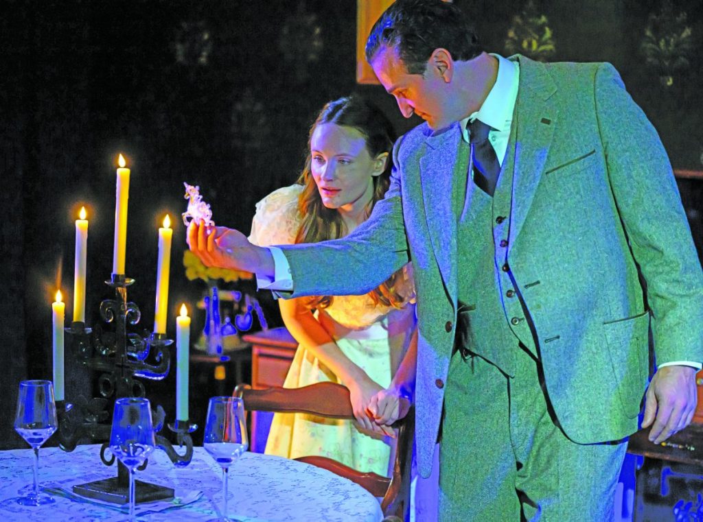 Before the show and during the intermission, period music is provided by vintage sound recordings of 1920’s and 1930’s tunes such as “Love Nest” and “Lullaby of the Leaves,” perhaps typical of the old phonograph records Laura is said to play, in addition to her hobby collecting figures for her glass menagerie.