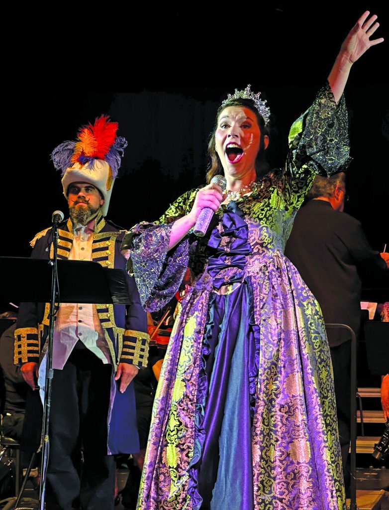 Elizabeth Barnes as Grand Duchess Christine (right) and Michael Beder as General Boum (left) in Victorian Lyric Opera Company’s “The Grand Duchess of Gerolstein.”