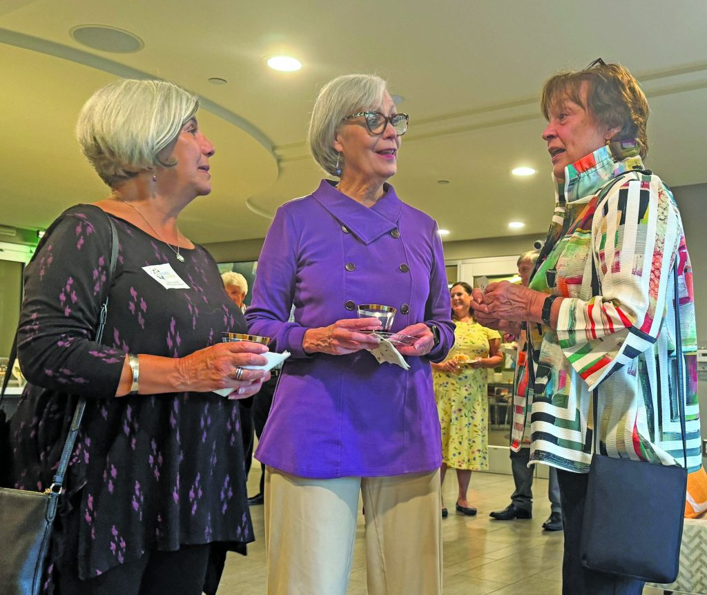 AT THE SEASON OPENING reception for the Creative Cauldron last Saturday night, three of the principal driving forces for the theater operation compared notes. Left to right: long-time board chair Gina Caceci, founder and executive director Laura Hull, and board member and former F.C. Vice Mayor Marty Meserve. (News-Press Photo)