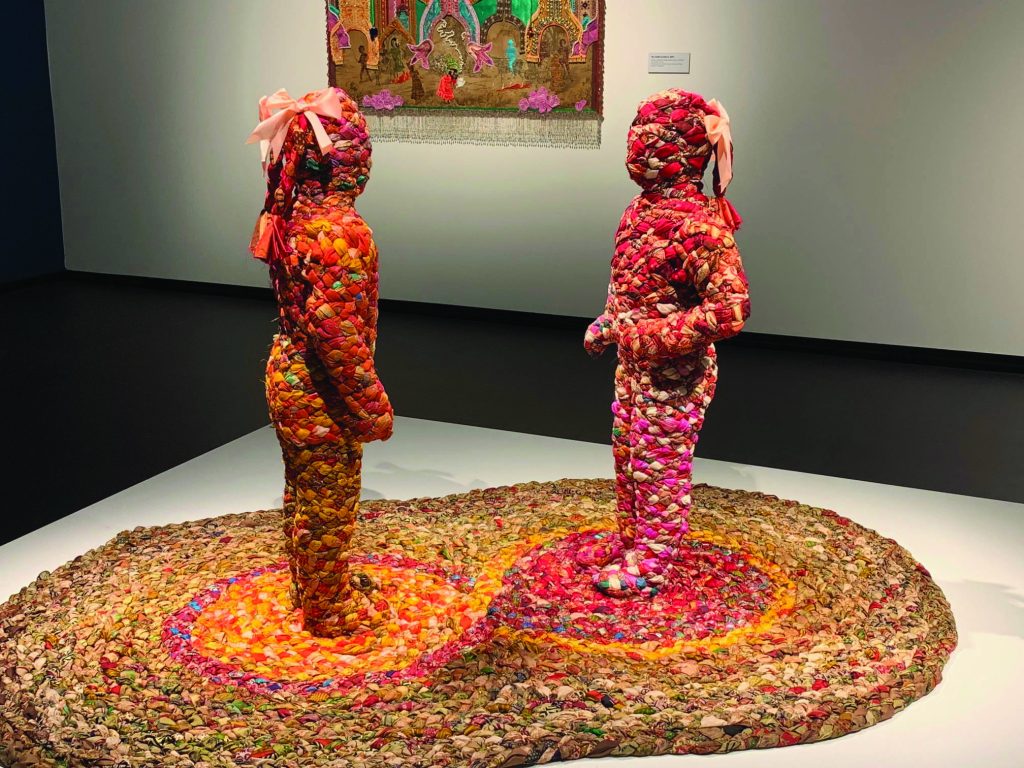 The big and bright show spanning several galleries has something for everyone, including materials she has found and recycles into her works, and some worn by her family, friends, herself and others, all combining to make the display more interesting.