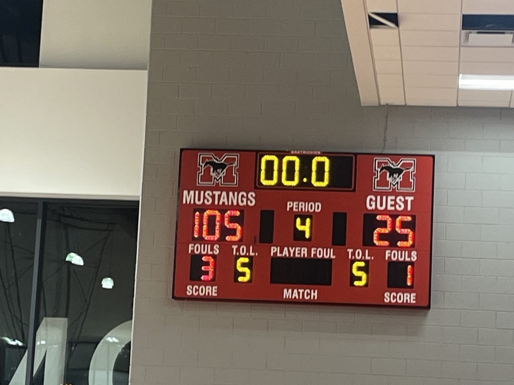 Will Davis got things going with an early three to set the tone, and then another bucket off a turnover on the next possession. Then it was everybody else’s turn to get in on the fun, as Meridian scored the game’s first 31 – no, that is not a typo, 31 – points in a relentlessly dominant first quarter. After trailing 34-2, Brentsville went on a miniature run in the second frame to keep the deficit in the thirties, but the Mustangs pulled away to a halftime lead of 59-13, and it only grew from there. Even with Jim Smith and staff sitting Meridian’s starters for most of the second half, the home team led 87-18 after three and then hit the century mark late in the fourth quarter, winning by a final score of 105-25.